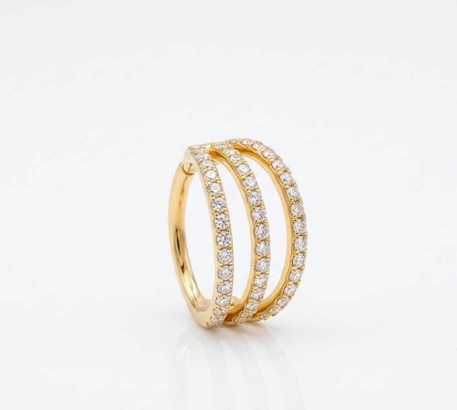 Seu design versátil se adapta perfeitamente a diversas regiões, proporcionando um encaixe confortável e uma cicatrização mais tranquila. Além disso, o acabamento polido garante um brilho sofisticado que valoriza ainda mais o seu visual.